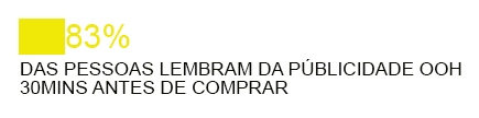 Por sua proximidade física com o varejo, o OOH é um meio que direciona o consumidor para a loja, mas não é tão simples assim. De acordo com a OutSmart, 83% das pessoas lembram de ter visto publicidade OOH nos últimos 30 minutos antes de fazer compras, tornando o OOH o meio dominante na “última janela de influência” - ou seja, pouco antes das pessoas comprarem. A eficiência do OOH em impulsionar as vendas diretas foi comprovada em muitos estudos. Por exemplo, a pesquisa de OCS da Posterscope demonstra que 11% dos consumidores fizeram uma compra em uma loja física / supermercado / restaurante ou cinema nos últimos 7 dias como resultado direto da exibição de um anúncio OOH.