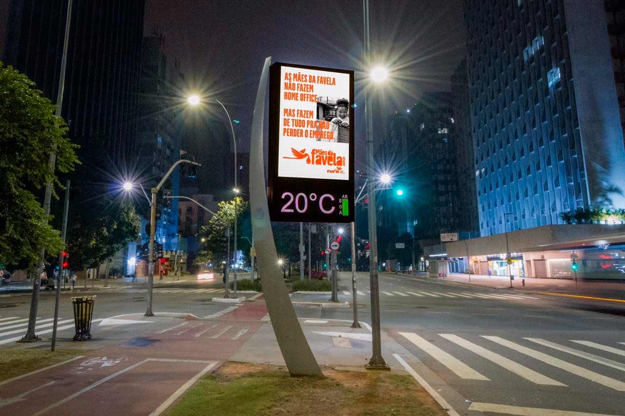 A empresa colocou seus ativos à disposição para exibir mensagens importantes que informam a população que ainda precisa estar nas ruas, orientações que ajudam na prevenção da contaminação, homenagens aos profissionais que estão prestando serviços essenciais (como saúde, transporte e limpeza) e apoio aos projetos que visam assistir as pessoas mais afetadas pela crise, como Festival Fome de Música, Central Única das Favelas e Amigos do Bem.