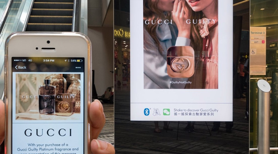 Ultimamente, os anunciantes de fragrâncias têm usado mobiliários inteligentes para fazer com que suas campanhas estejam um passo à frente - passando de um reconhecimento de marca e construção de marca diretamente para o drive-to-store. As novas soluções de conectividade móvel oferecem às marcas a possibilidade de criar um vínculo mais pessoal com seus consumidores, transmitindo o anúncio entre o OOH e o celular.